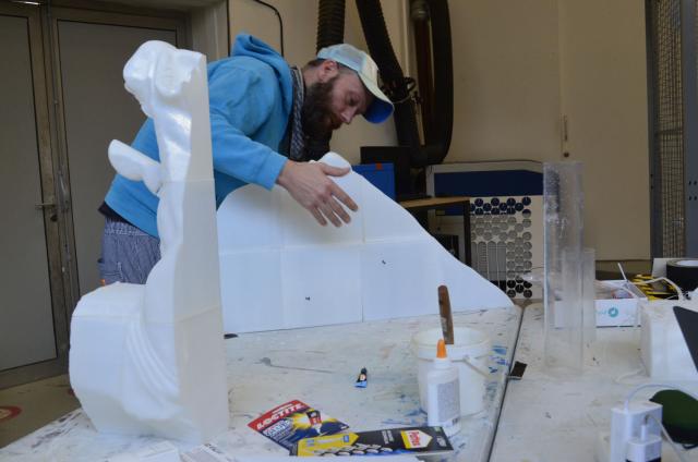 Mais il y a une difficulté : les imprimantes 3D de Raphaël peuvent produire des volumes d'au maximum 20 cm³ pour un plâtre haut de 80 cm. Il a ainsi dû le transformer en puzzle, à réassembler ensuite, via le logiciel Blender®.