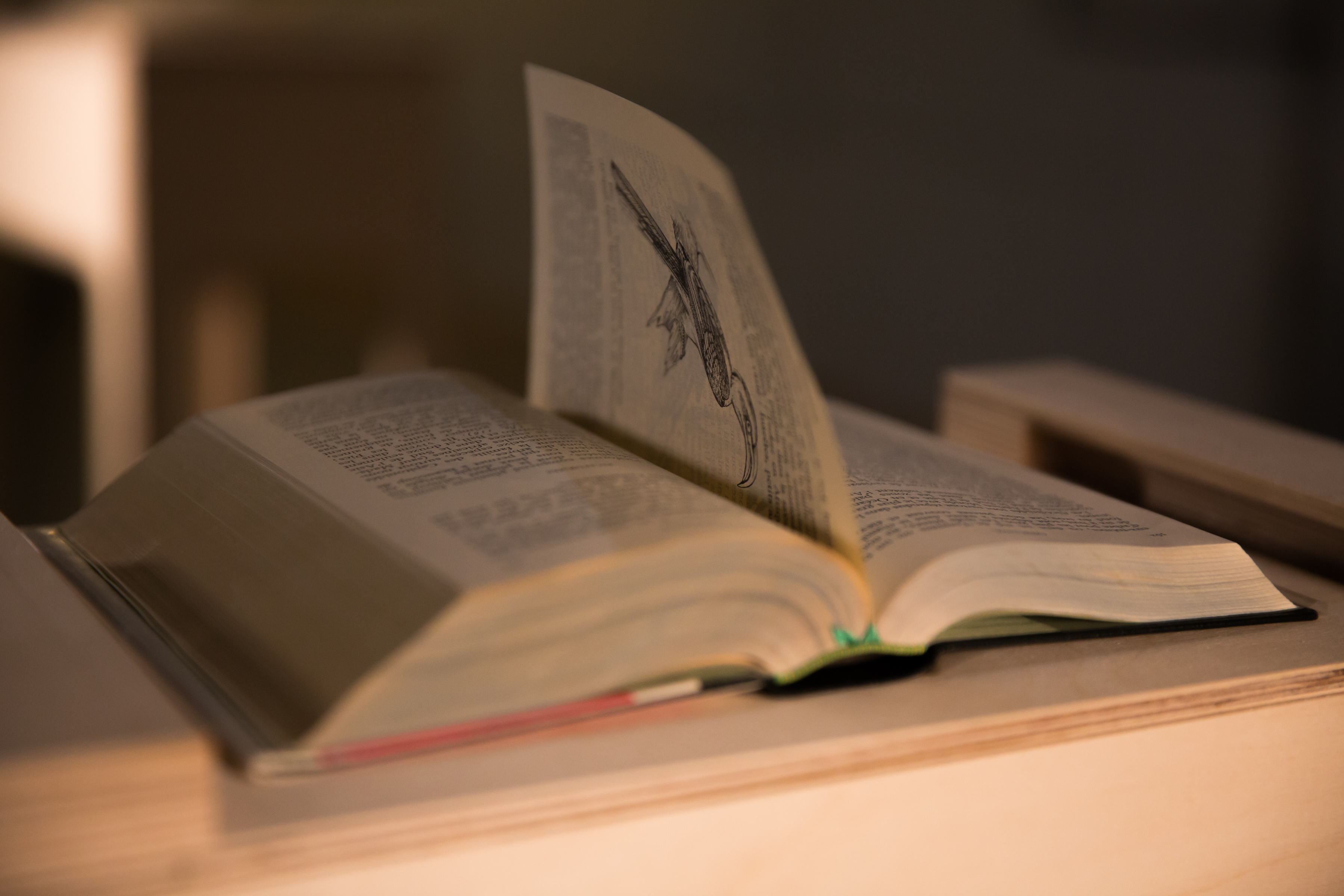 Ventilateurs, programmation, bois et livres ouverts. Objets impossibles à réaliser sans l’apport de Claude-Olivier Guay, de Jean-François Lahos et de la Chambre blanche à Québec.