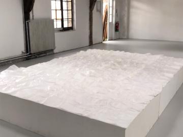 « Les lignes sont à mon regard celles qui construisent et structurent le monde. Elles tracent et laissent une marque dans les espaces que nous parcourons : les réseaux textiles se transforment en paysage topographique aux multiples possibilités. »