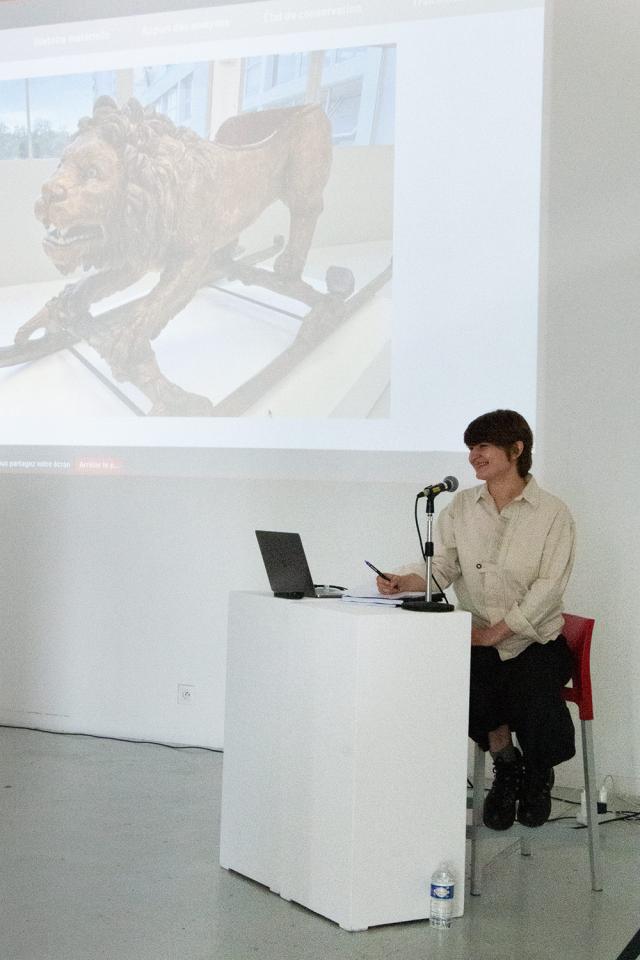 Jury DNSEP CRBC 2024 : Marie-Hélène Didier, Présidente du jury (Conservatrice générale du patrimoine, Conservatrice des monuments historiques, Conservation régionale des monuments historiques, DRAC Île-de-France) ; Lionel Arsac (Conservateur du patrimoine, Département des sculptures et Conservation préventive des collections, Établissement public du château, du musée et du domaine national de Versailles) ; Mathilde Tiennot (Post-doctorante, Centre de recherche sur la conservation des collections (CRC)) ; Pascale Roumegoux (Conservatrice-restauratrice de sculptures) ; Julia Becker (Conservatrice-restauratrice et professeure à TALM-Tours)