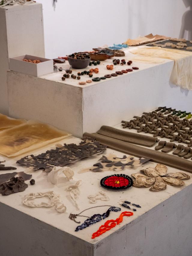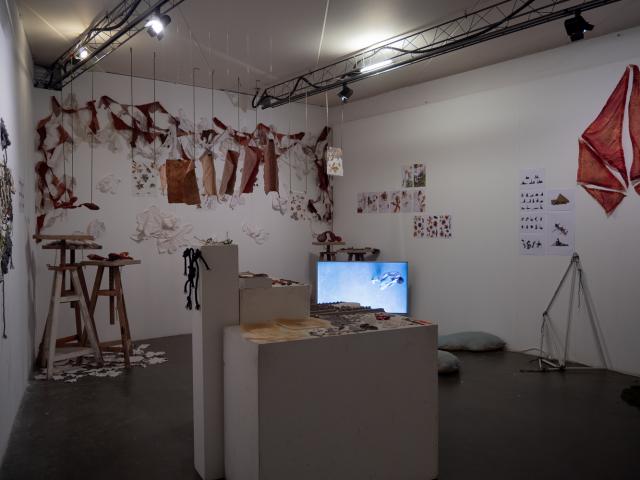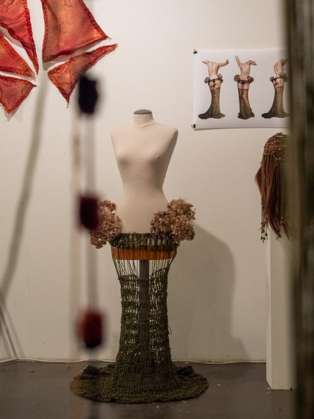 Entre déchirure et réfection, paroles et cicatrices, déconstruction et affirmation : comment la résistance se tisse ? Les vêtements sont vu ici comme témoins de vie, de lutte et objets de résistance. Il est donc question de la radicalité d’un corps mis à nu tentant de porter plus haut ses batailles. Ce travail a été nourri par la danse, le burlesque, le strip-tease, le drag, pour leurs codes esthétiques et leur politisation. Ces pièces textiles sont le fruit de l’évolution d’une réflexion sur le corps des femmes.
