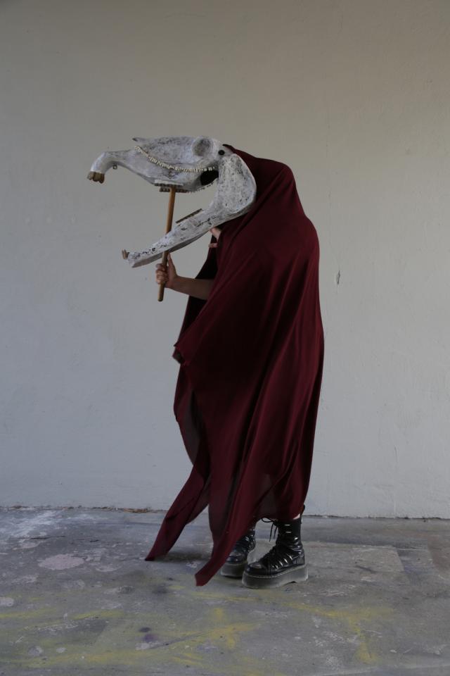 Et une fois que le monde est à la bascule ? Et une fois que le monde brûle ? Et une fois que le monde s’éteint ? Jusqu’où s’étend le temps ? Jusqu’à quand s’épuise l’espace ? Les bêtes de l’apocalypse s’étirent sur la ruine du monde, cavalent sur le temps qui se courbe, venues faucher la mauvaise herbe et préparer le monde. Chevaux d’apocalypse est une fable masquée. Une énième histoire de cycle, sûrement autant que heureusement pas la dernière. Dans cette caverne s’entonnent les pas des rites agraires fêtant les saisons et le renouveau.