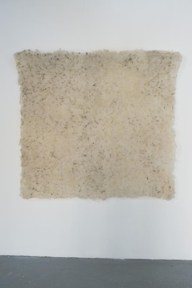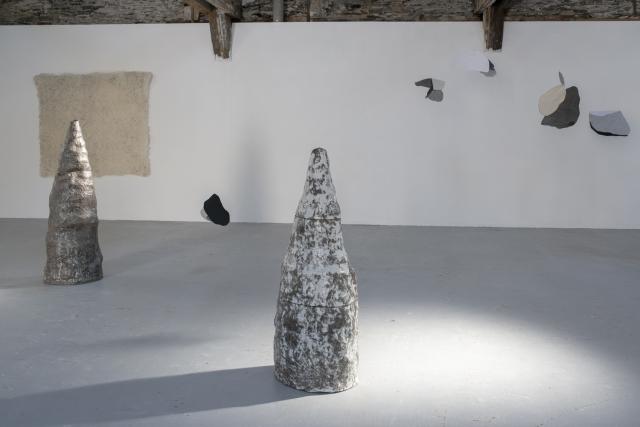 « J’ai eu le temps de faire. Le temps de finir mes volcans, de laisser de côté les affirmations, de tisser des liens timides avec ce qui peut me relier aux terres normandes, de toucher ces terres normandes et la toison des moutons qui l’habitent. Je propose des formes et des regards. Des sensibilités que l’on n’est pas