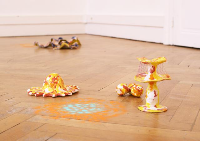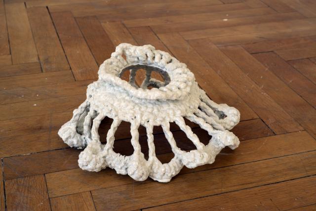 Florine Renaut mène une pratique d’atelier axée sur la création de pièces en porcelaine, céramique, crochet, tapis et poudre. Ces matériaux, choisis pour leur richesse expérimentale et sensorielle, forment le socle d’un travail d’installation in situ où l’attention se porte sur le rythme, la composition et la relation à l’espace.