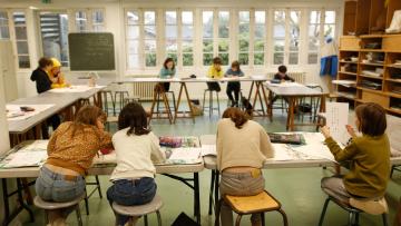 Accompagné par l’enseignante, il apprend à produire ses propres créations artistiques autour des thèmes qu’il choisit. Certaines d’entre elles pourront être sélectionnées pour l’exposition des cours publics organisée chaque année à l’école.
