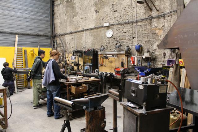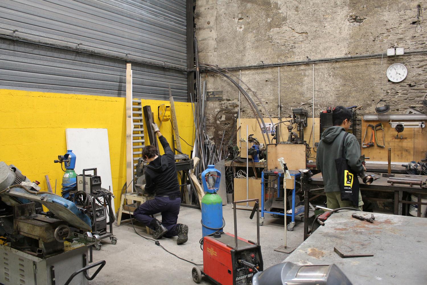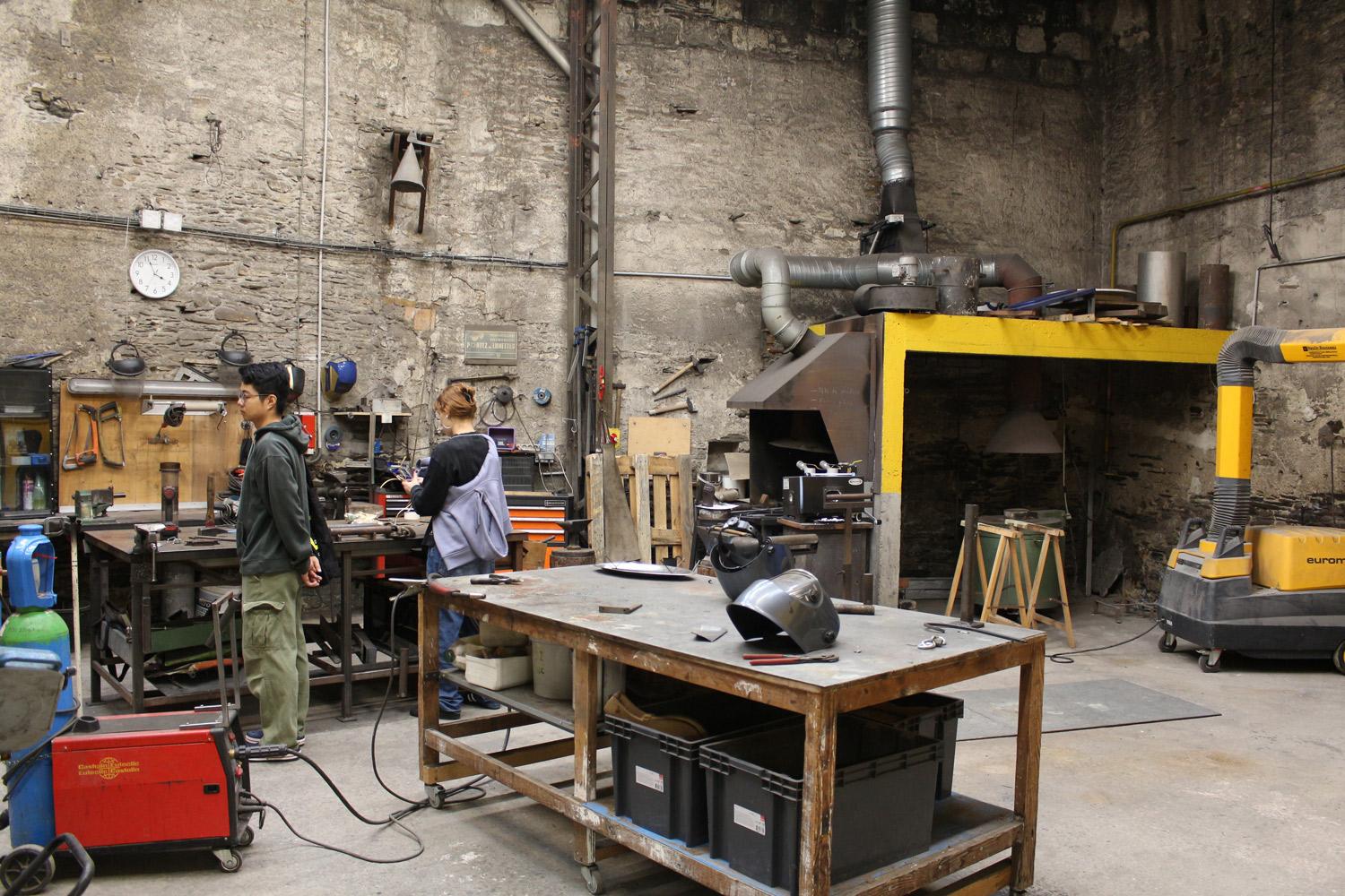 La métallerie permet le travail, en autre, de l’acier même si tous les types de métaux peuvent être travaillés soit sous forme de feuilles, de tubes, etc. Équipé d’arcs à souder et d’une forge, cet atelier permet d’accompagner les élèves dans la réalisation de leurs travaux artistiques.